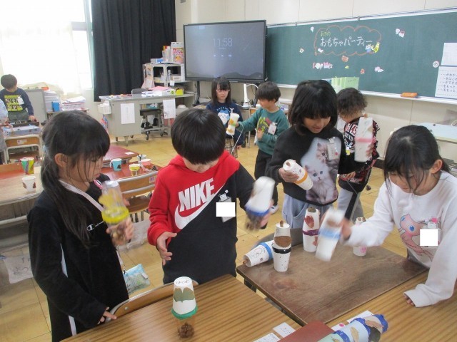 また、昼放課には、ペア学年の6年生を教室に招待して、おもちゃで遊んでもらいました。