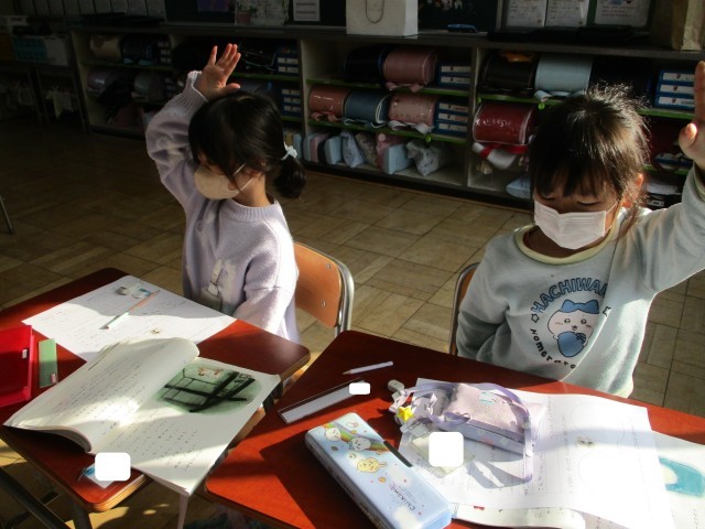 計算練習として、「11-6」「13-9」「12-8」など先生が言っていく問題を聞き取り、ノートに書き取り答えを瞬時に出していくとう練習をしました。「全部まるだったよ!!」「一問まちがえちゃた!」と一生懸命取り組みました。
