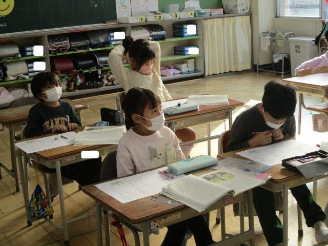 国語の「くじらぐも」の会話文を順番に読みました。内容に合わせた声の出し方を考えました。