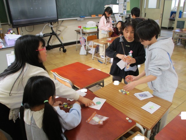 また、昼放課には、ペア学年の6年生を教室に招待して、おもちゃで遊んでもらいました。
