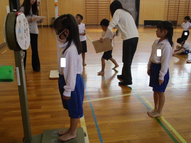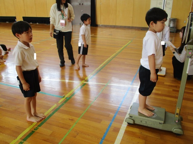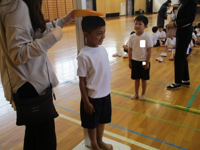 身体測定がありました。測定の前には、先生に「おねがいします」、終わった後は「ありがとうございました」としっかりとあいさつもできました。