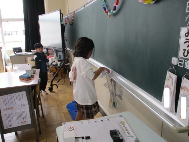 掃除もそれぞれの担当場所でがんばっています。自分たちも、もうすぐ2年生です。