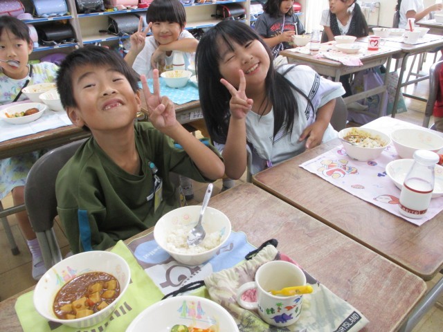 「うどん、そのまま食べてもおいしい!」と笑顔で今日の給食の食レポ(食べ物レポート)をしてくれました。