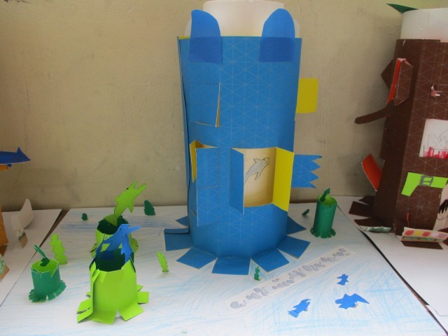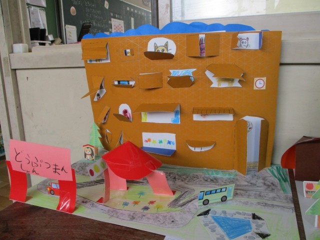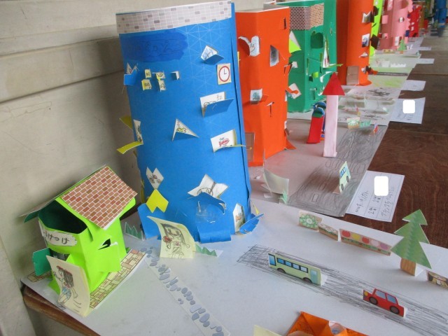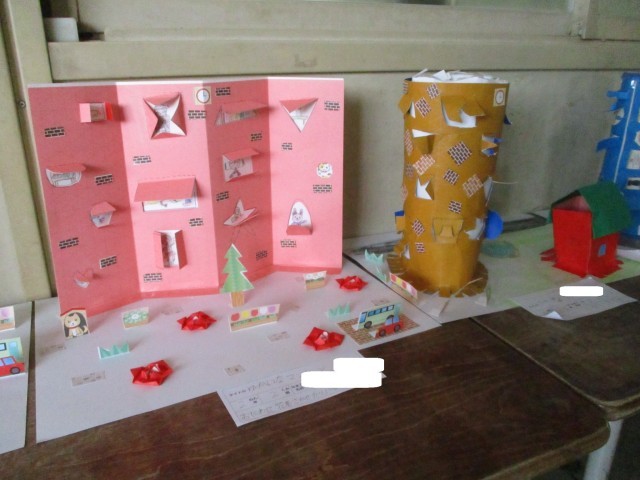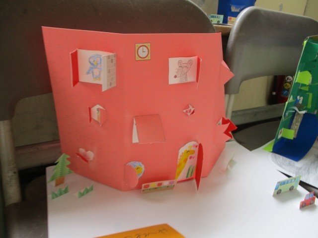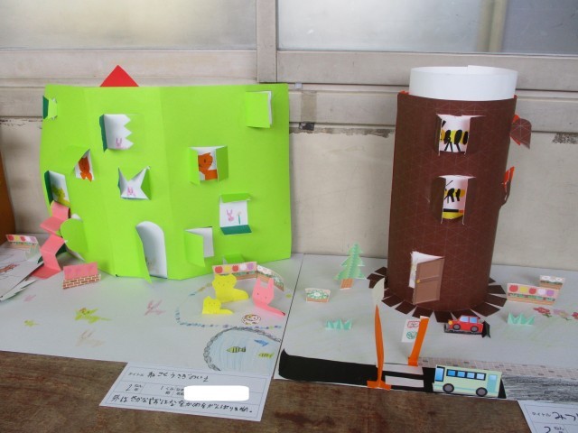 図工では、カッターナイフを初めて使いました。カッターナイフを上手に使い窓をつくった作品の一部を紹介します。