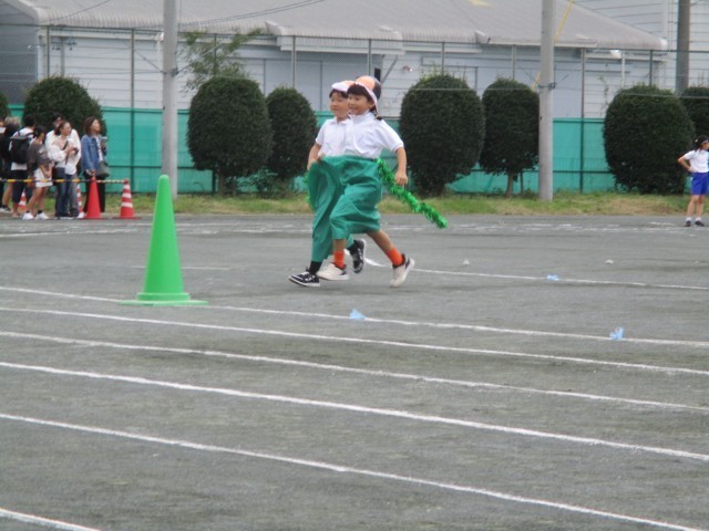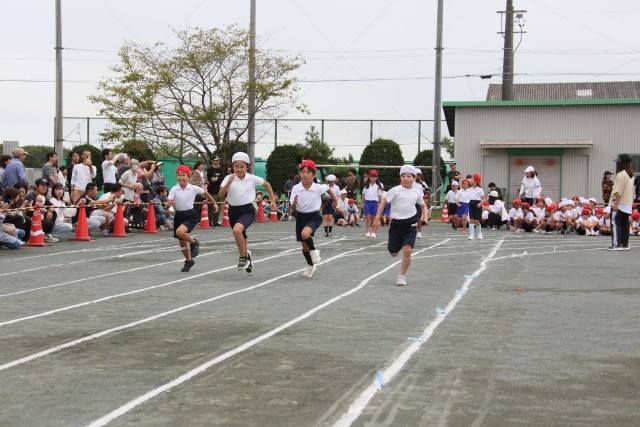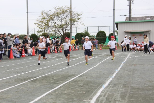徒競走では、たくさんのおうちの方の声援にこたえ、ゴールまで一生懸命駆け抜けました。