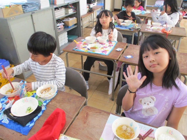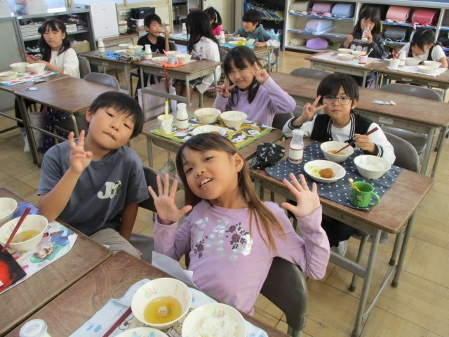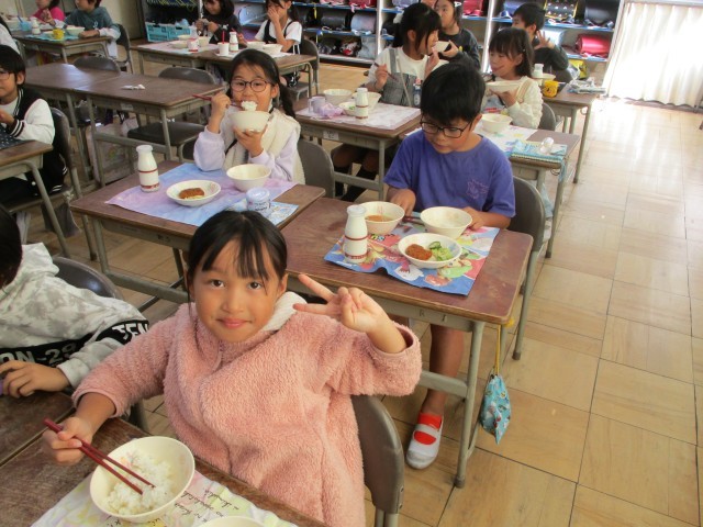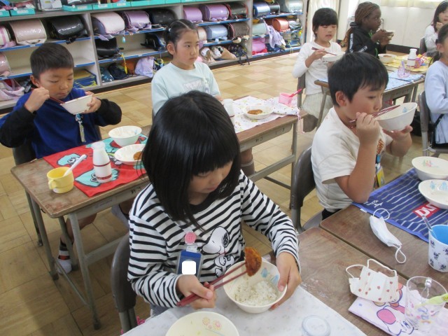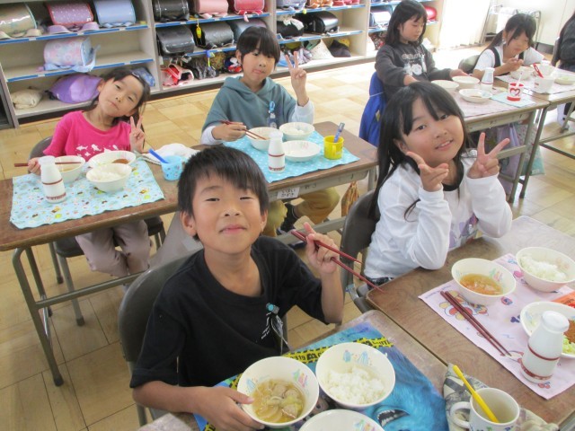 「うどん、そのまま食べてもおいしい!」と笑顔で今日の給食の食レポ(食べ物レポート)をしてくれました。