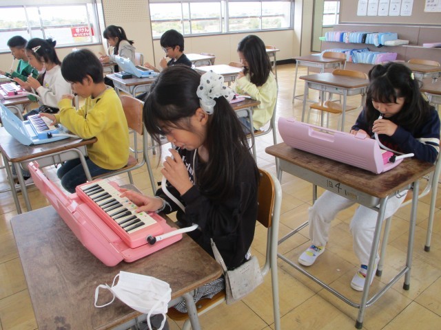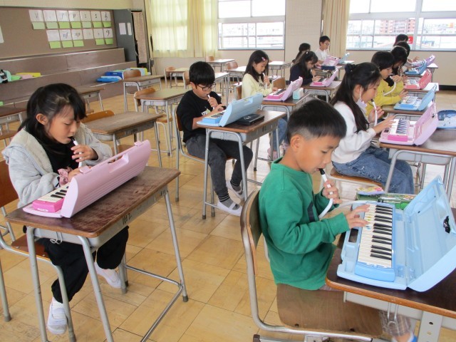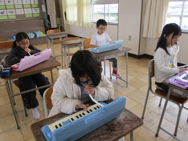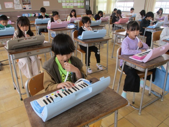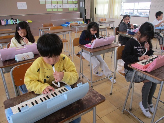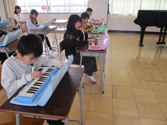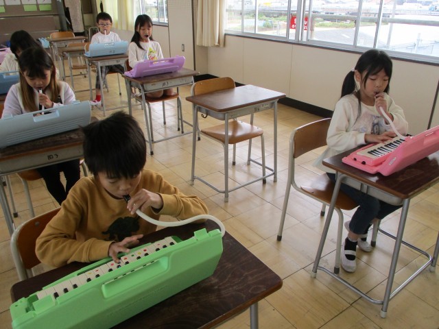 今日の音楽は、鍵盤ハーモニカのテストがありました。練習を積み重ねた成果を発揮しました。