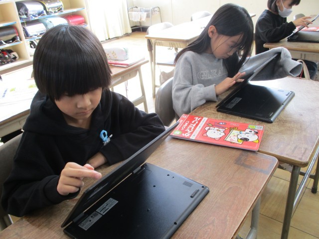 九九の仕上げの練習をしたり、学習者用端末を使って既習の漢字の復習をしたりしました。