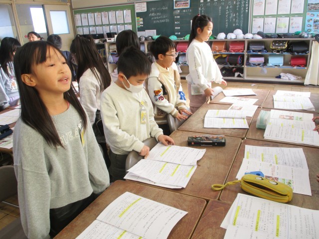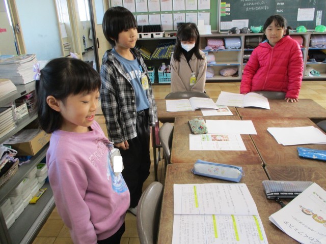 国語の時間に、グアムから交流でみえているお友達に音読を披露しました。声をそろえて心をこめて音読しました。