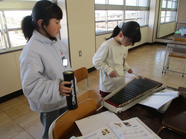 音楽では、「こぎつね」を鍵盤ハーモニカで、みんなと息を合わせて演奏できました。