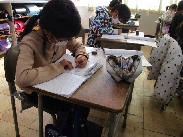 算数のテストをしました。解き終わった後に、しっかりと見直しもできました。