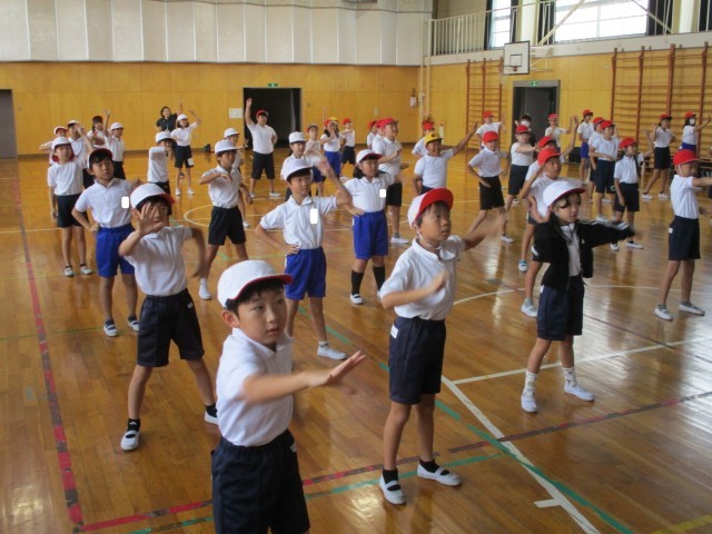 運動会の踊りの練習を3・4年生で行いました。子どもたちは、すごいはやさで振り付けを覚え、笑顔で踊ることができました。