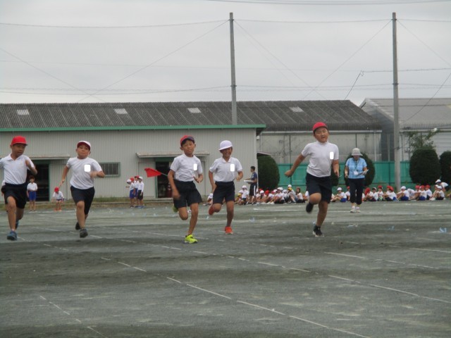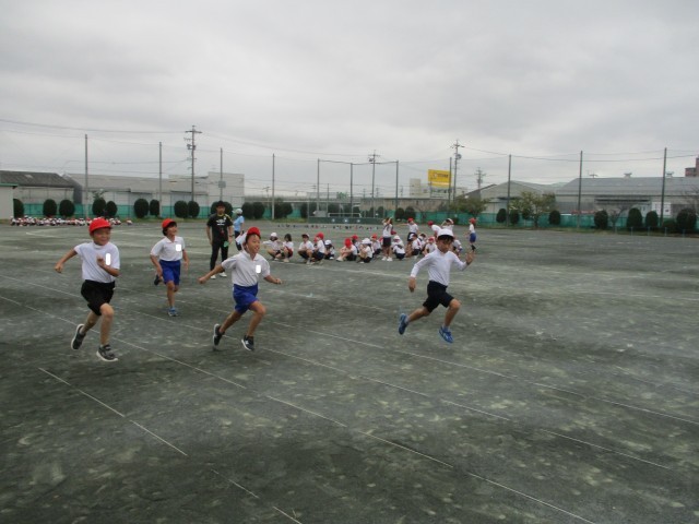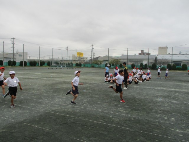 運動会に向けて、トラックの半周のタイムを計りました。一生懸命ゴールまでかけぬけて、さわやかな笑顔が見られました。