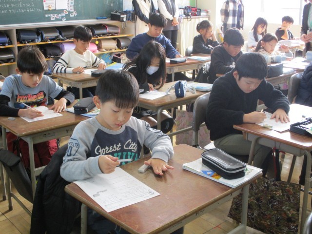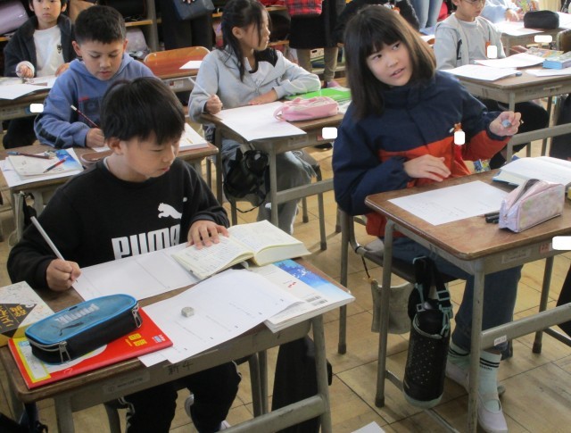 国語では、漢字の組み立てを学習しました。漢字は、「へん」と「つくり」でできていることが分かり、同じ「へん」が使われている漢字探しのゲームに、みんなが熱中しました。