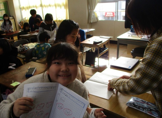 算数では、練習問題をみんなで教え合いながら身に付けていました。