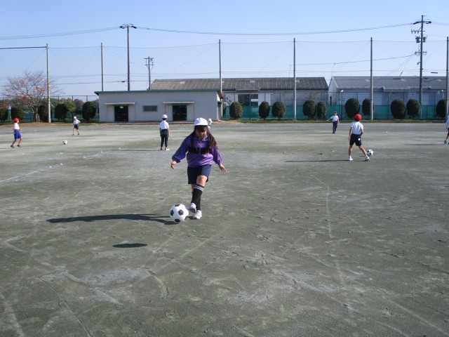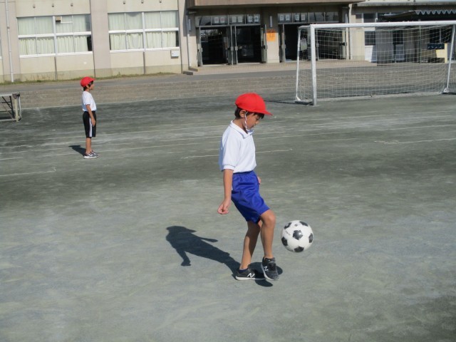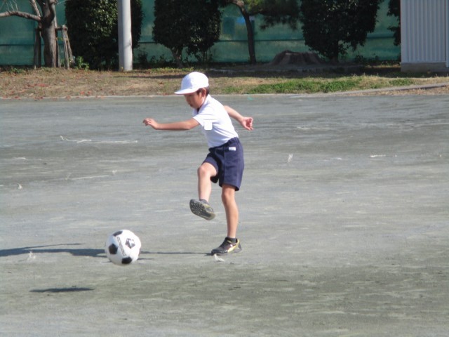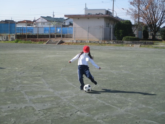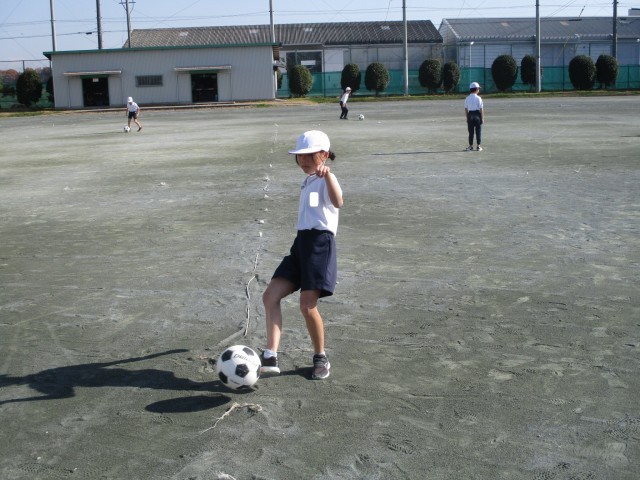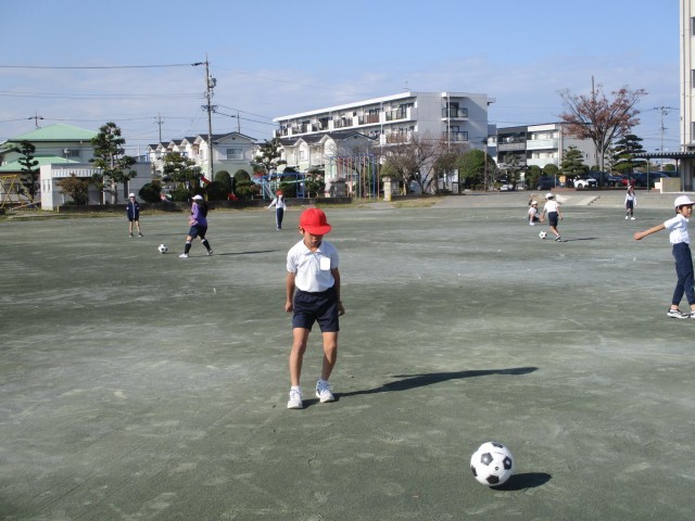 体育では、サッカーをしました。今日は暖かな日で気持ちよく運動ができました。