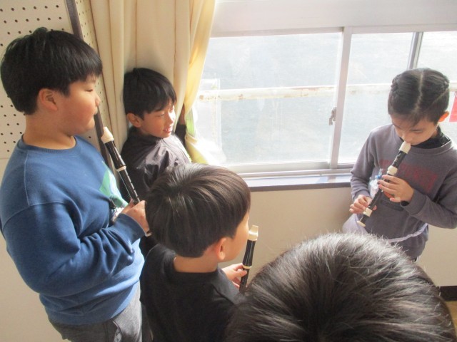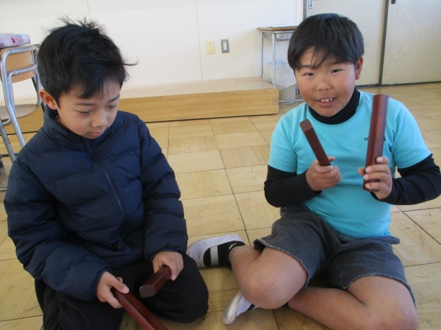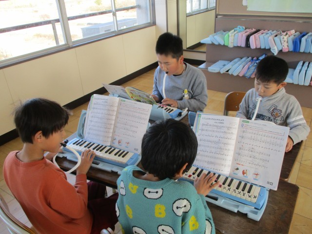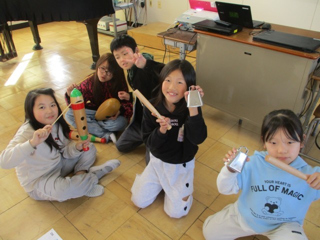 音楽では、「メロンの気持ち」をリコーダーや鍵盤ハーモニカ、クラベス、ギロ、カウベルの楽器に分かれて演奏をします。