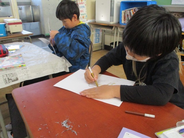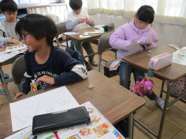 国語では、漢字の組み立てを学習しました。漢字は、「へん」と「つくり」でできていることが分かり、同じ「へん」が使われている漢字探しのゲームに、みんなが熱中しました。
