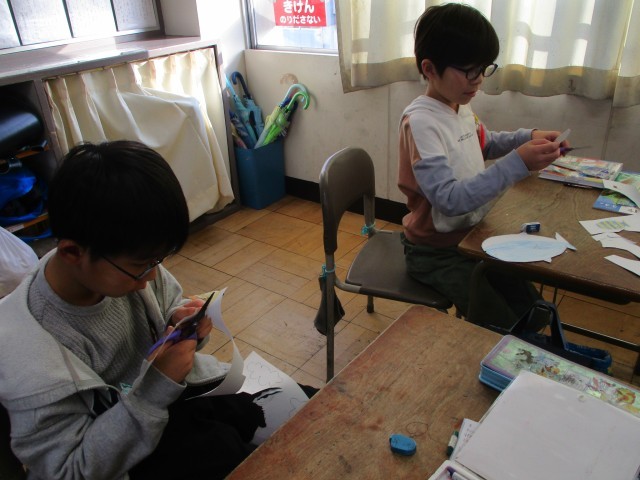 今日は、学習の導入として、コマを作りました。コマは、回すとどんな形でも円になることを実感しました。