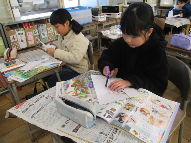 図工では、「リリの思い出せないものがたり」というお話を聞いて、感じたことや様子を描く読書感想画に取り組んでいます。