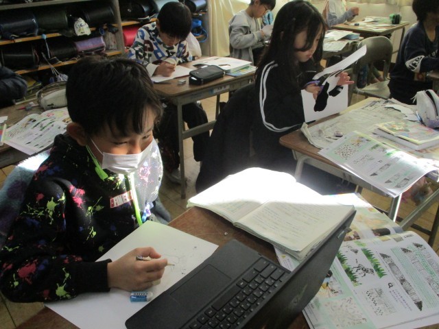 国語の「ちいちゃんのかげおくり」の感想を読み合いました。自分の感想と比べて、似ているところやちがうところを感じました。