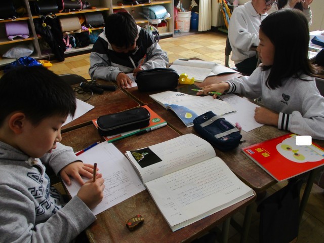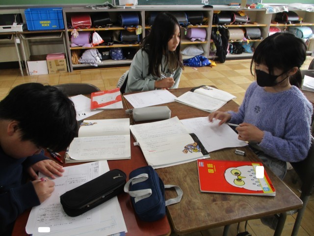 漢字のプリントに対して、よい姿勢を意識して取り組むことができていました。これからも、「ピン・ピタ・グー」を意識させていきたいと思います。