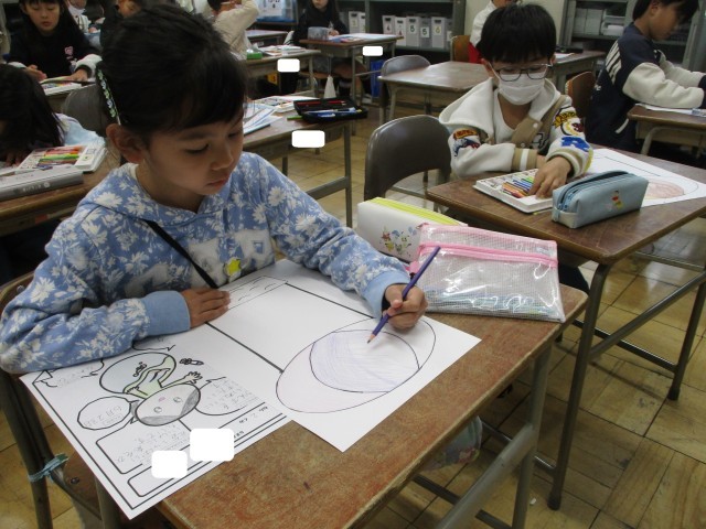 漢字のプリントに対して、よい姿勢を意識して取り組むことができていました。これからも、「ピン・ピタ・グー」を意識させていきたいと思います。
