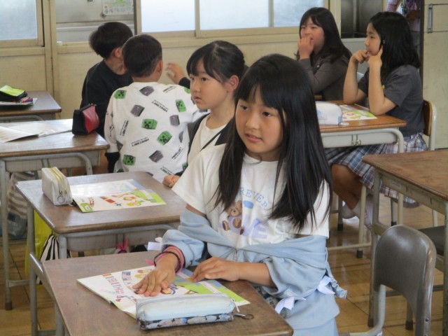 国語では、「モチモチの木」という物語文で学習をしています。一文交代読みで、みんなで順番に音読しました。