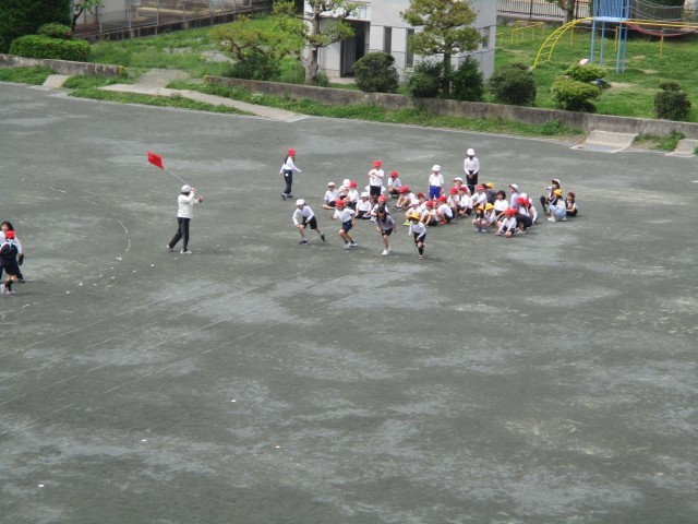 気温が低い日でしたが、昼放課は運動場で、サッカーや一輪車、フラフープなどで元気よく遊んでいる姿がありました。