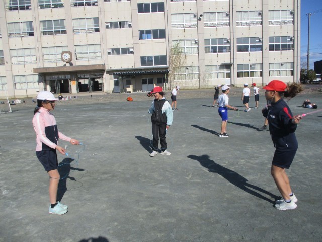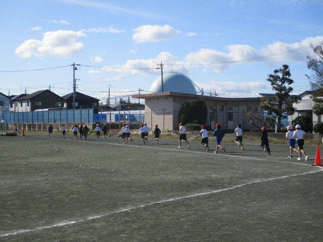 今日の体育では、まず初めに、男女に分かれて運動場大回りのコース2周を駆け抜けました。