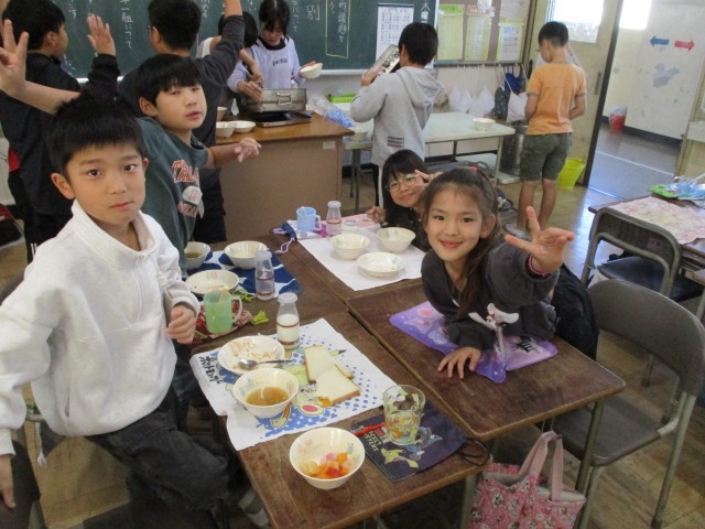 今日の給食のメニューは、子どもたちの人気のから揚げがあり、いつも以上に笑顔が見られました。