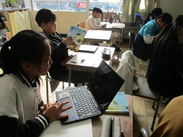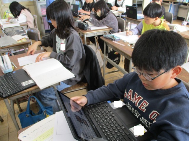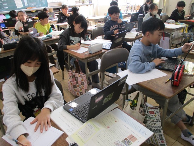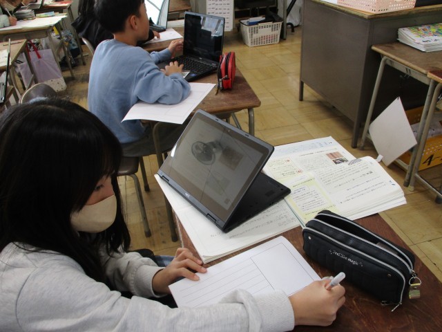 国語では、自分で興味をもった伝統工芸品について、それぞれ調べてまとめています。