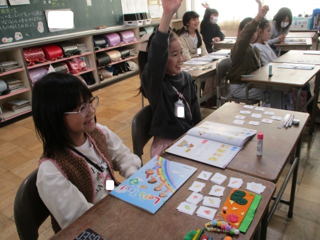 今日の外国語活動では、スゴロクを使いながら、グループで楽しく単語を覚えました。
