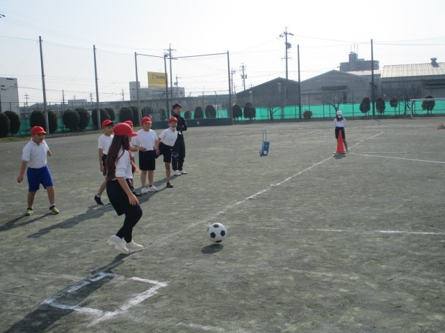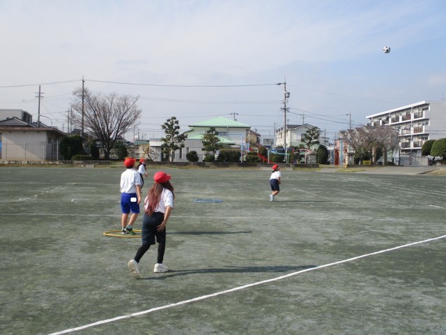 体育では、キックベースをしました。仲間のよいプレーに、励ましのすてきな声がとびかっていました。