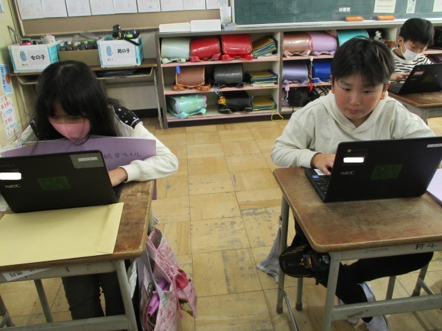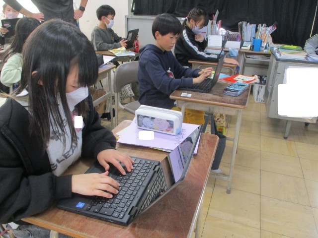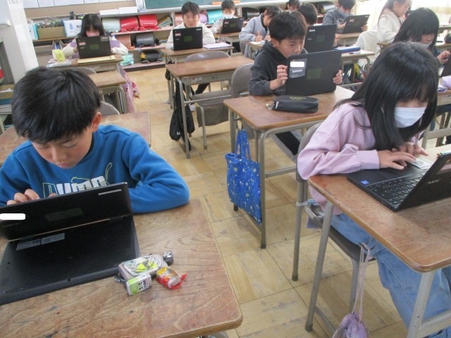 総合の時間では、ICT支援員さんの指導のもと、グラフィックデザインツールを使って、ポイ捨て禁止を呼びかけるポスターを作成しています。