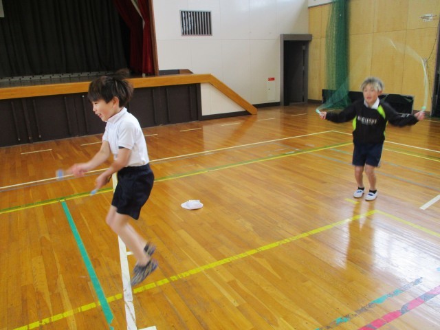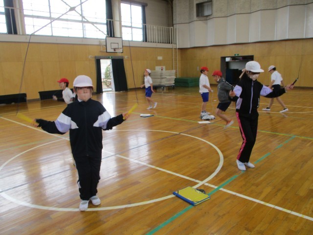 体育では、縄跳びをしました。「あやとび得意だよ!」「二重跳びもできるよ!」と技を披露してくれました。