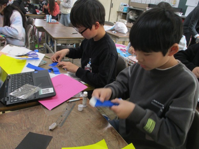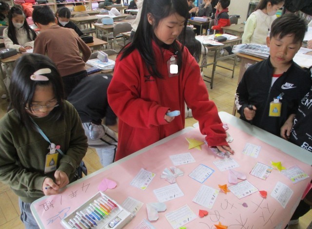 図工では、感謝の気持ちを表すカードを作成しています。一人一人の個性が光る作品ができています。