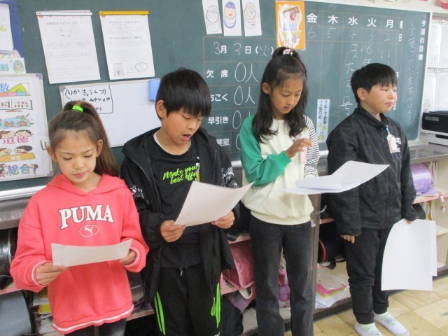 「6年生を送る会」で代表で言うセリフを決めました。やる気に満ちていてすてきです。