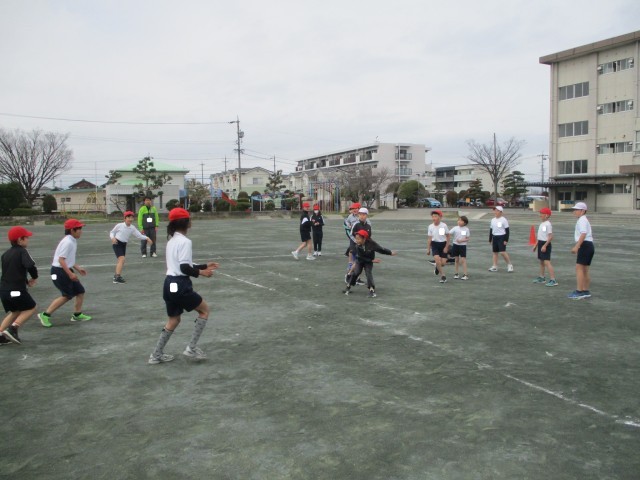 今日の体育では、まず初めに、男女に分かれて運動場大回りのコース2周を駆け抜けました。