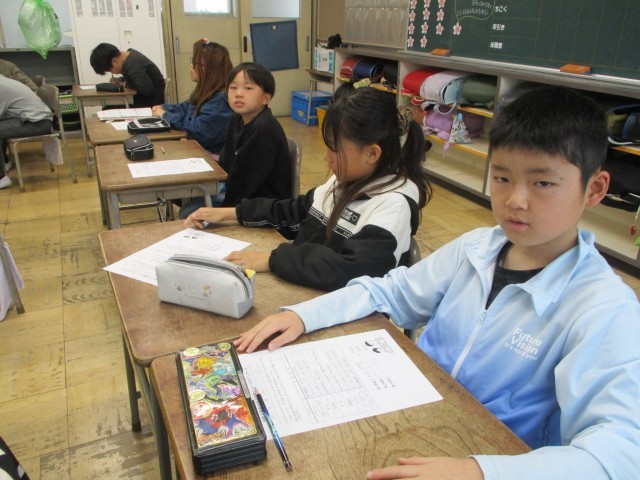 外国語活動では、前の復習で学校にある様々な部屋の言い方を確認しました。ALTの発音する英語を聞き取り、どの部屋か当てました。 -