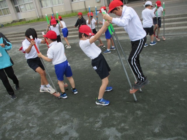 今日はみんなで竹馬と一輪車とフラフープに取り組み、楽しみました。