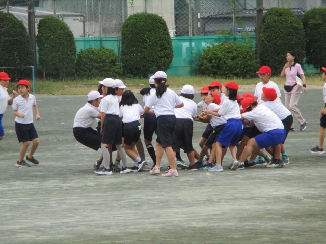 今日は、暑さ指数はやや低めでしたが、水分補給をしっかりとしながら一生懸命競技しました。