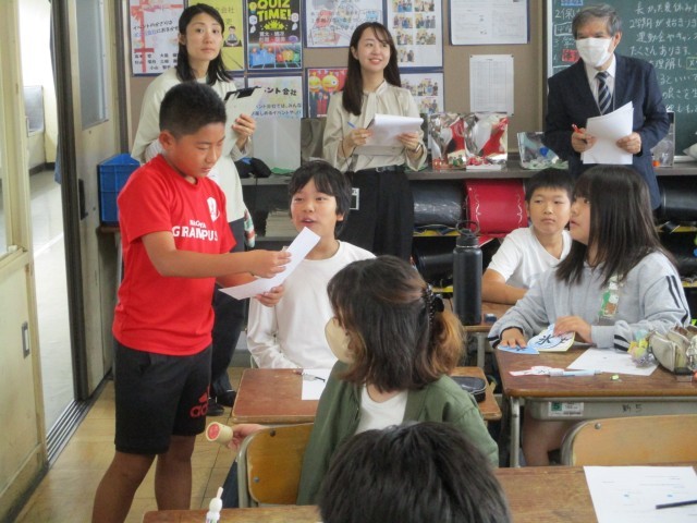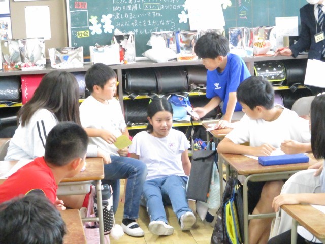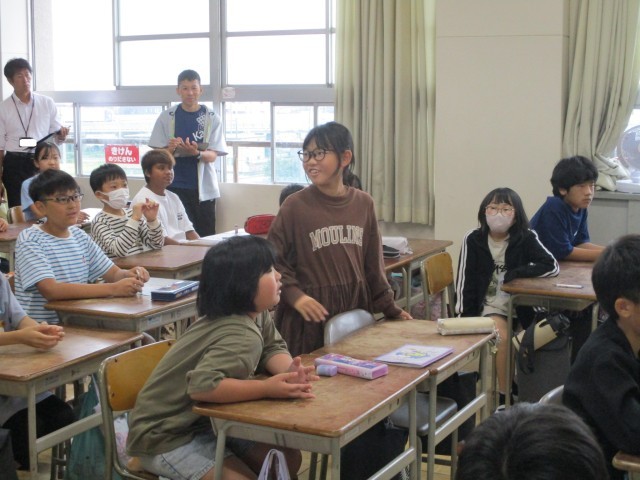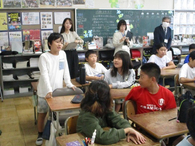 今日は、グアムから児童2名と先生1名が本校を見学にみえました。5年生のクラスで歓迎の時間をすごし、その後、高学年の運動会の練習や様々な学年の授業の様子を見てもらいました。5年生の児童は、しっかりおもてなしの気持ちで接することができました。
