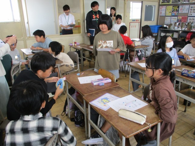 外国語の授業では、ペアで練習した会話を、みんなの前で披露しました。「Can you ~ ?」「That's ~」など様々な表現を入れながら会話をしました。