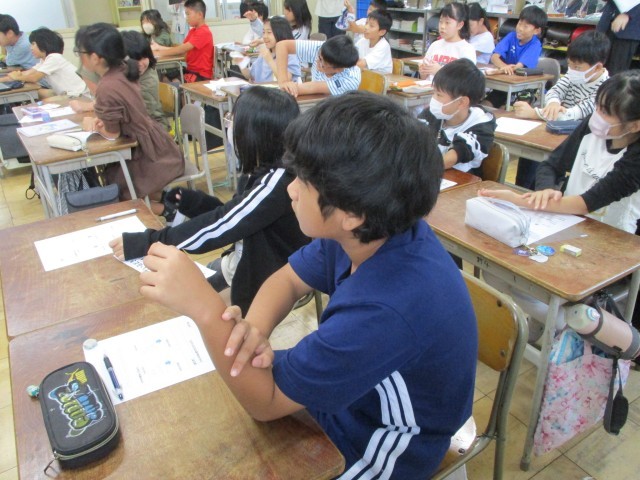 理科「台風と気象情報」で学んだことの確認をしました。今後台風が近づいたときは今回の学習を思い出して、台風の進みを予想したり、対策したりしてほしいと思います。