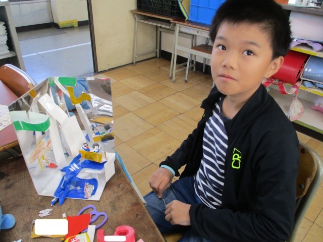 「立体にしたのは、自分だけだよ!」「ぼくのは、ものすごく難しいよ」と自分の作品を笑顔で紹介してくれました。