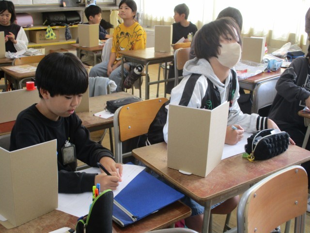 国語では、戦争をテーマとした物語文を読んでいます。みんな真剣に朗読を聞き入っていました。