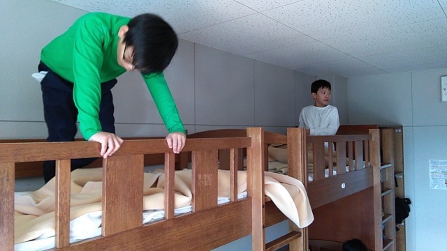 予定通り、岐阜市少年自然の家に到着しました。入所式では、施設の方の話を真剣に聞きました。