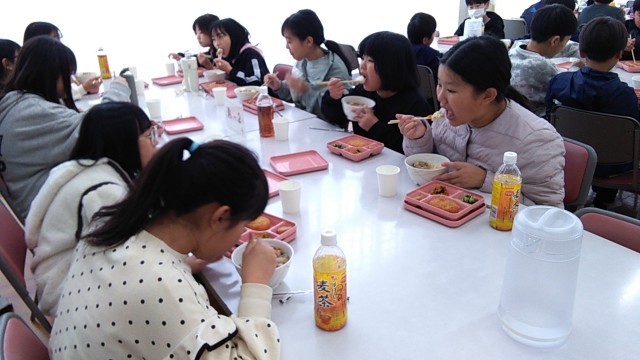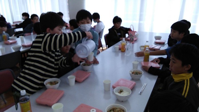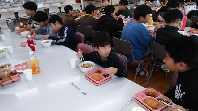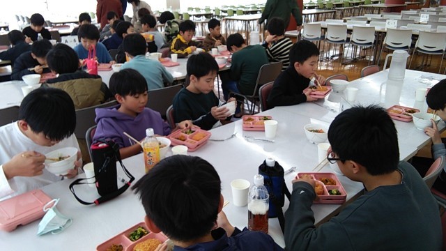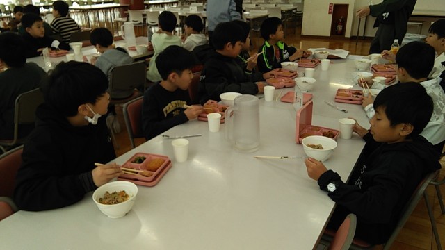 昼食をいただきました。野外教育活動最後の食事です。テーブルをていねいに拭いたり、いすの整頓をしたりして、次に使う人のことを考えて行動できました。