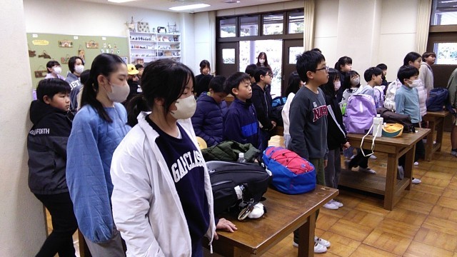 退所式です。2日間お世話になった岐阜市少年自然の家の職員の皆様方に心をこめてお礼をしました。